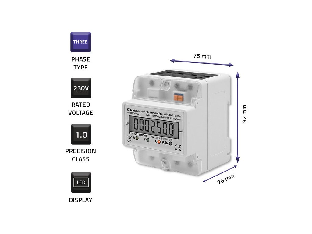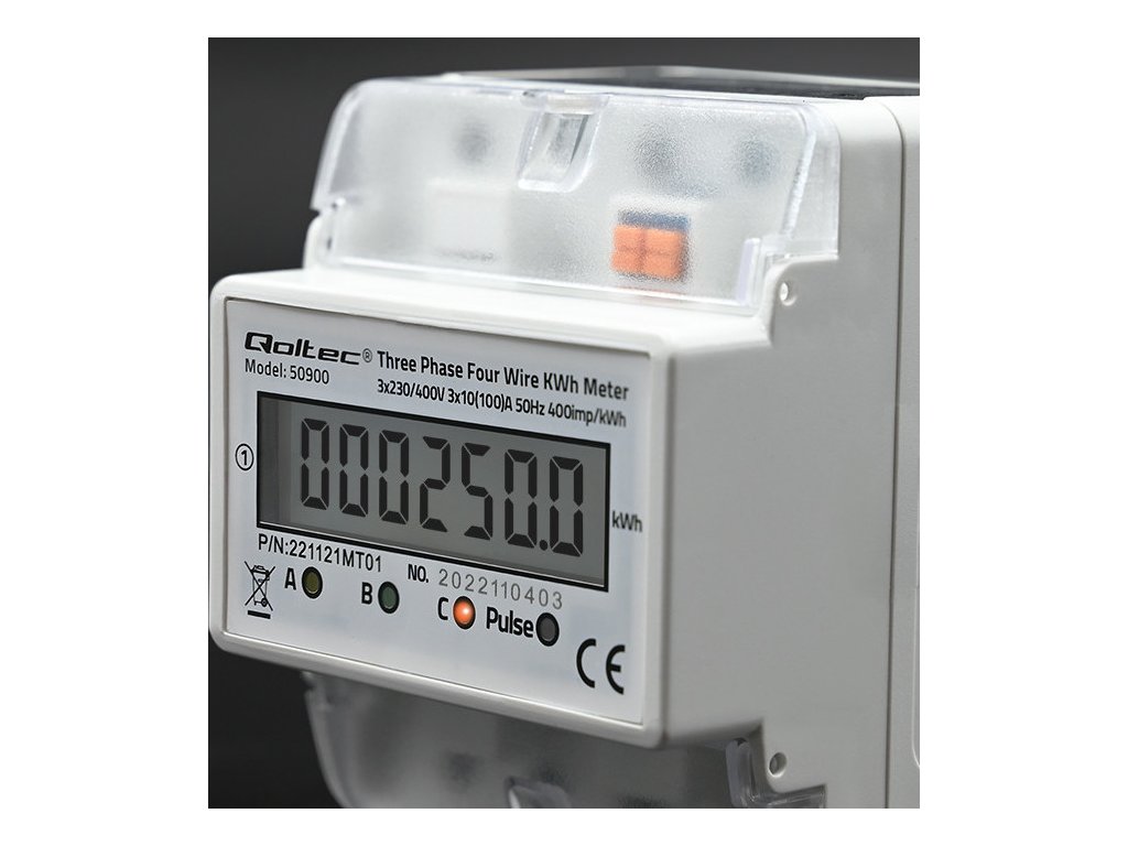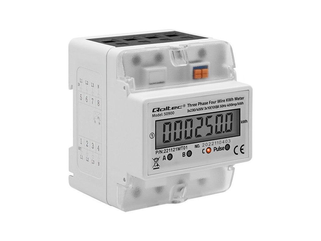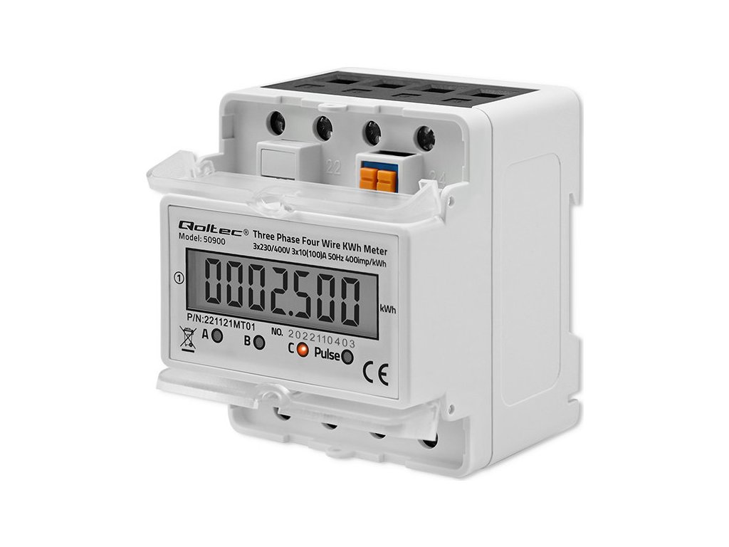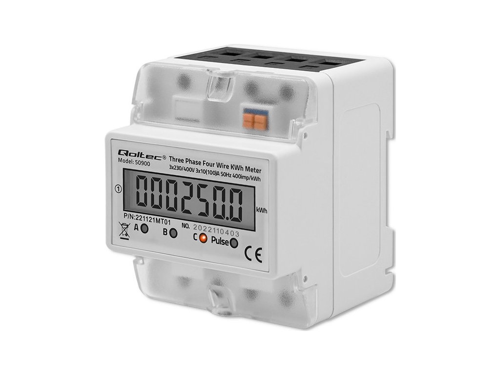 Elektronický elektroměr umožňuje průběžně sledovat úroveň spotřeby elektrické energie třífázovými přijímači napájenými střídavým proudem 230V s frekvencí 50Hz . Zařízení má LED indikátor , který signalizuje spotřebu energie, LED bliká s frekvencí, která závisí na spotřebované energii s pulzní konstantou 400 imp/kWh. Na LCD displeji se zobrazuje hodnota spotřebované energie vypočítaná na základě počtu impulsů. Měřič je určen k instalaci do rozvaděčů na DIN lištu TH35 . Další výhodou produktu je velmi jednoduché ovládání a malé rozměry , což jistě usnadní instalaci zařízení.
