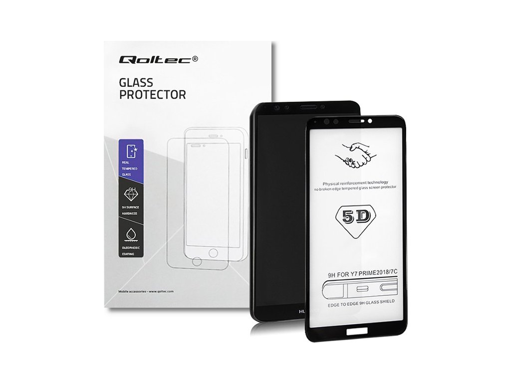 Tvrzené sklo Qoltec Premium pro Huawei Y7 Prime | 5D | ČERNÁ