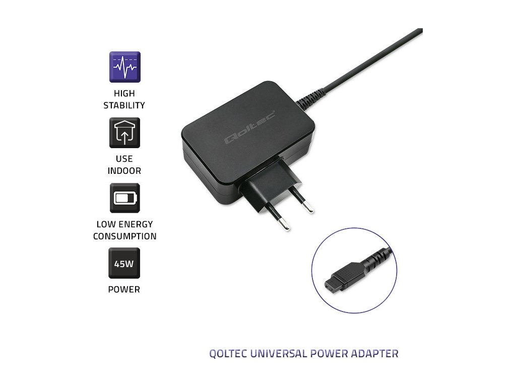 Abyste si užili efektivní vybavení a zároveň ušetřili místo a peníze při koupi několika modelů vyhrazených napájecích zdrojů, vyplatí se zvolit univerzální napájecí zdroj, který lze použít pro mnoho zařízení dostupných na trhu . Univerzální napájecí zdroj Qoltec má až 8 vyměnitelných zástrček , které lze namontovat prakticky na jakoukoli značku notebooku, stačí vyjmout zástrčku a napájecí zdroj automaticky upraví napětí. Kompaktní rozměry a moderní design budou navíc další výhodou napájecího zdroje.