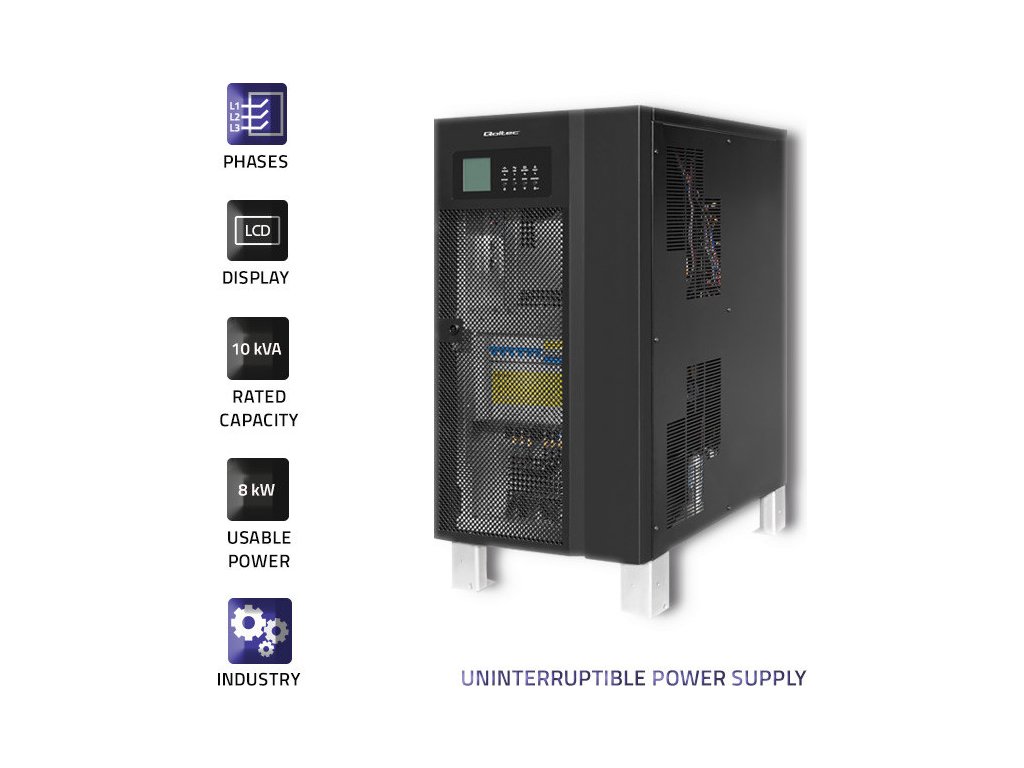 - Podporu napětí v ONLINE režimu - v případě výpadku napájení se UPS přepne na záložní baterii do 0 ms.