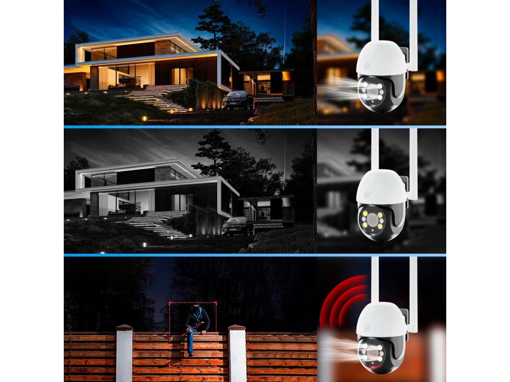 Venkovní bezpečnostní kamera Extralink je vybavena barevným CMOS senzorem pro křišťálově čisté 1296p snímky a videa bez ohledu na povětrnostní podmínky. 4 infračervená LED světla automaticky detekují okolní světlo a přepínají se do režimu barevného nočního vidění, monitorovací vzdálenost je až 20.