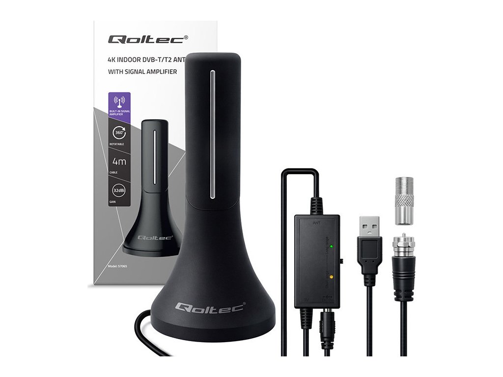 Vnitřní TV anténa DVB-T/T2 | zesilovač signálu | 4K | vysoký zisk 32dBi | 360º | 4m kabel