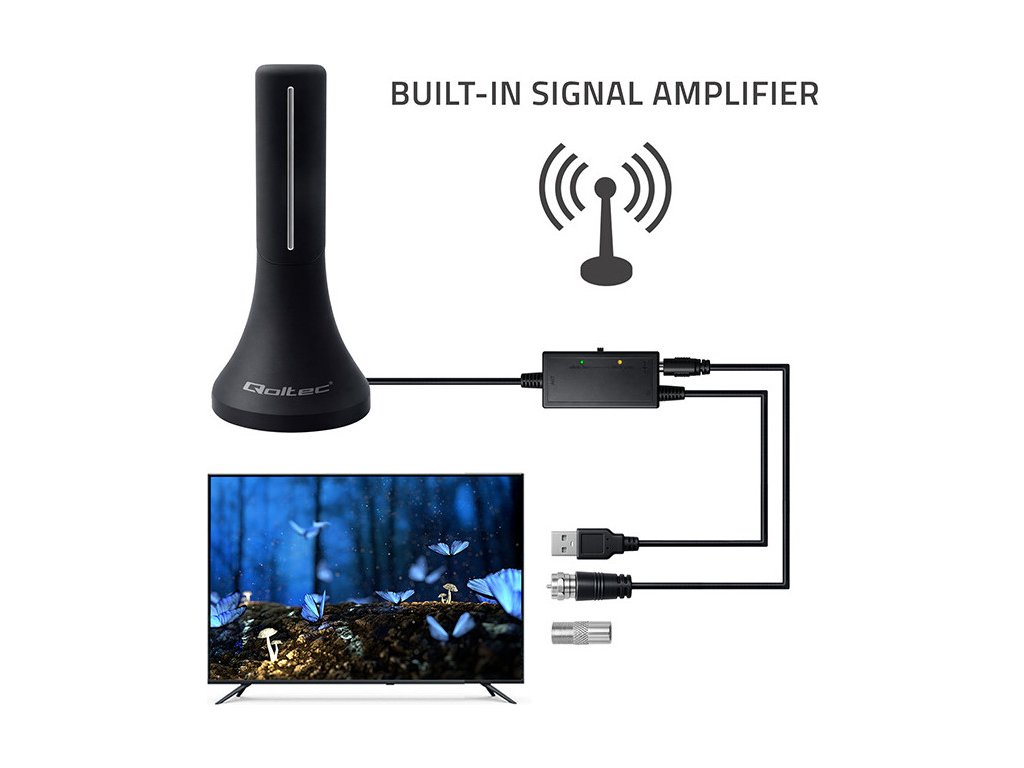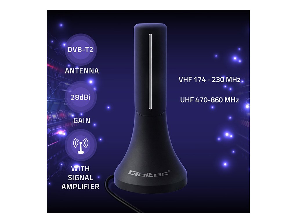 Tato moderní DVB-T/T2 anténa je navržena tak, aby zajistila stabilní příjem všech digitálních a pozemních kanálů DVB-T a DVB-T2 dostupných v Polsku, včetně MUX-1, MUX-2 a MUX-1. To uživatelům poskytuje plný přístup k aktuální programové nabídce s jasným a ostrým obrazem. Výkonný zesilovací obvod zaručuje stabilní a vysoce kvalitní signál, minimalizuje rušení a zlepšuje příjem v náročných místech. Anténa nevyžaduje žádné další napájení – jednoduše ji připojte k USB portu na televizoru nebo tuneru. Díky oblíbenému konektoru F-Male funguje s většinou DVB-T/T2 tunerů a moderních televizorů.