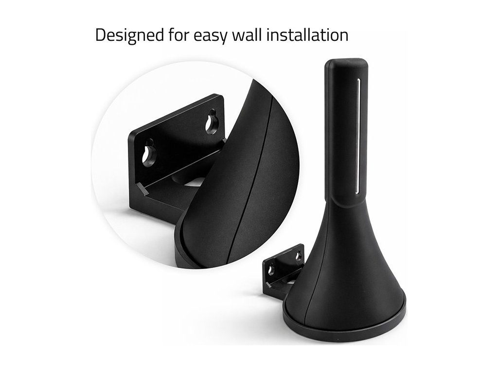 Základna antény umožňuje snadné umístění antény na optimální místo pro příjem, což přímo ovlivňuje kvalitu signálu. Instalace nevyžaduje žádné vrtání ani nářadí a v případě potřeby lze anténu rychle vyjmout a přemístit. Moderní, minimalistický design činí anténu skvělou v každém interiéru.