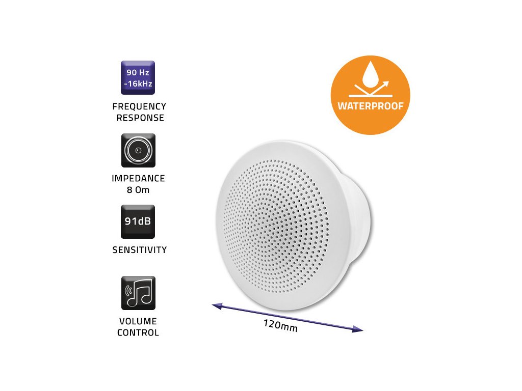 Vodotěsný stropní reproduktor 3" | RMS 3W | 8 Ohm | bílý