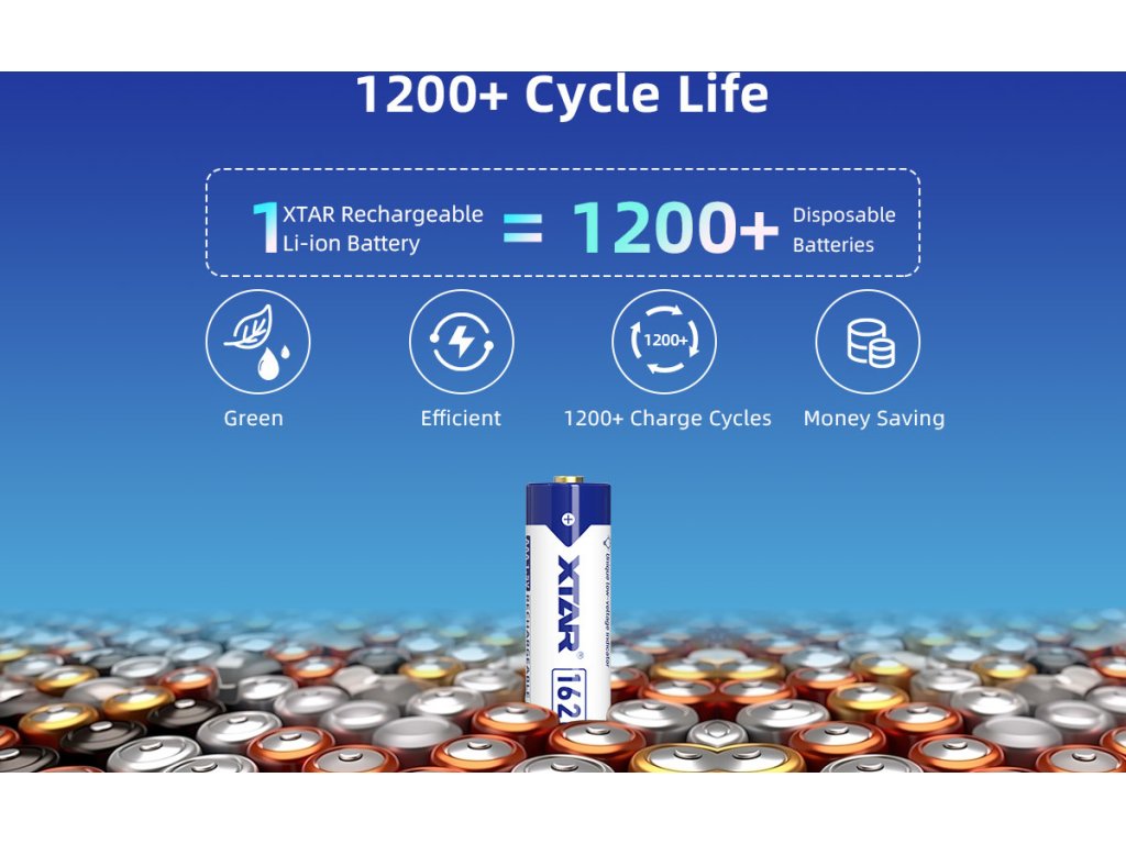 Na rozdíl od běžných nabíjetelných baterií (Ni-MH), které pracují jen s napětím 1,2 V, akumulátor XTAR udržuje stabilní napětí 1,5 V během celého cyklu vybíjení. Zařízení tak pracuje na plný výkon až do poslední chvíle.